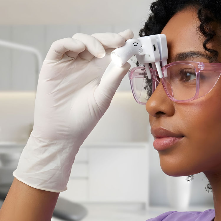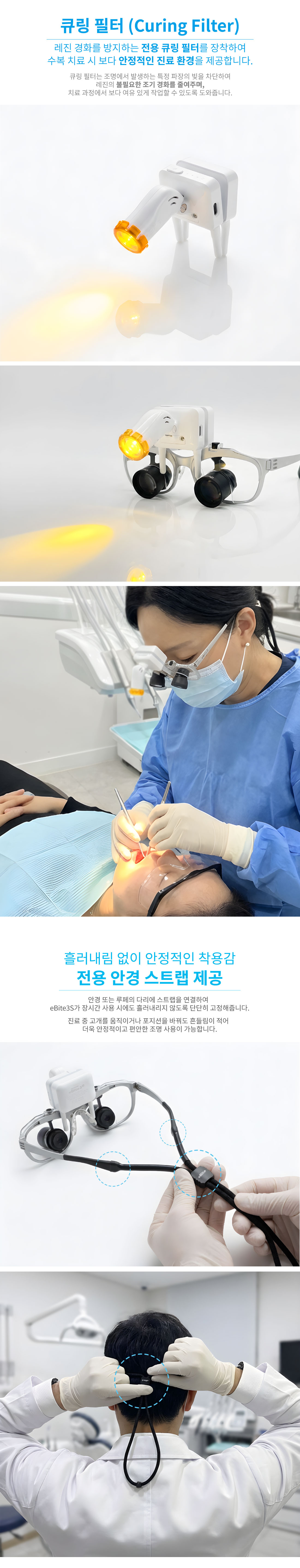 eBite3S는 루페, 보안경, 안경에 간편하게 장착하여