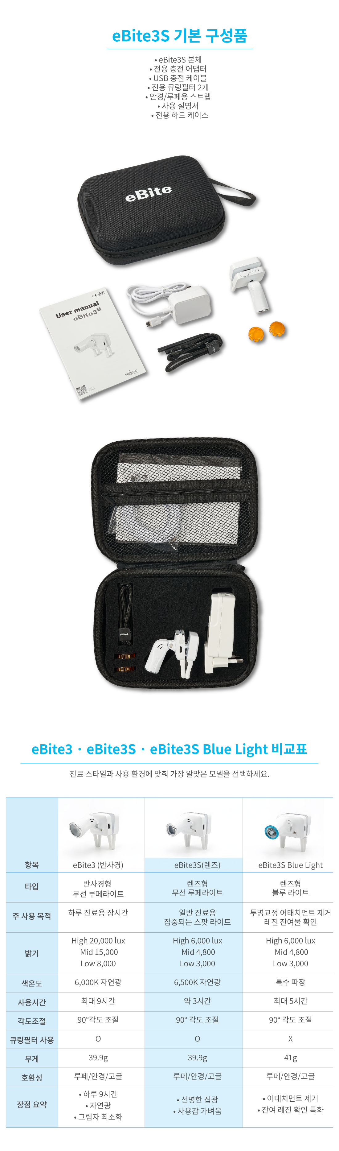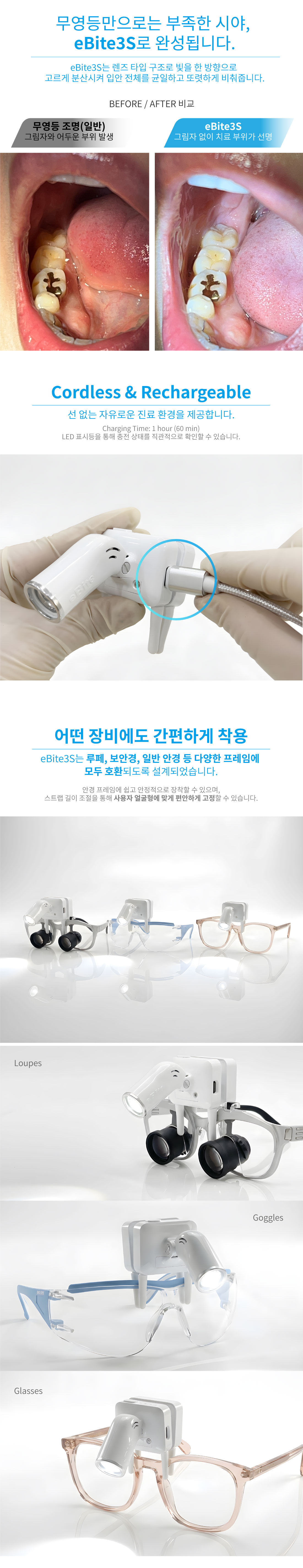 eBite3S 무선 LED 루페 라이트 (cordless, 충전)BESTMD