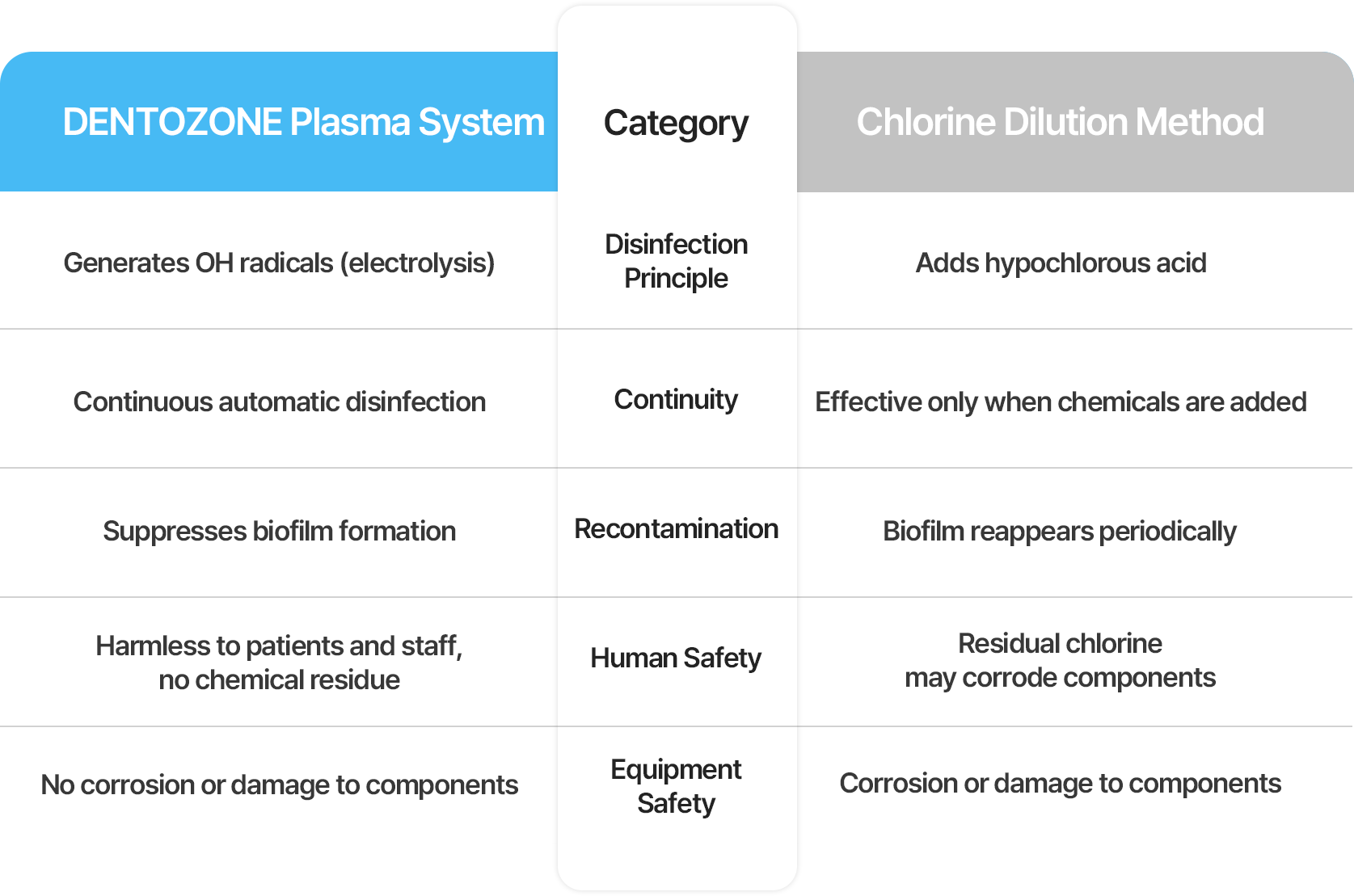 DENTOZONE’s Plasma Dental Water Control System takes a different approach.